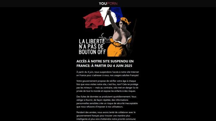 Le groupe Aylo, propriétaire de YouPorn / Redtube / Pornhub, a décidé de ne pas se conformer à ces exigences jugées trop intrusives, telles que l’utilisation de cartes d’identité ou de technologies de reconnaissance faciale. Pour éviter de collecter ou manipuler des données sensibles liées à leur audience, elles ont préféré couper totalement l’accès à leurs sites pour toute personne se connectant depuis une adresse IP française. En tentant d’accéder à ces plateformes, les internautes rencontrent désormais un écran noir sans explication détaillée, rendant toute navigation impossible depuis la métropole.