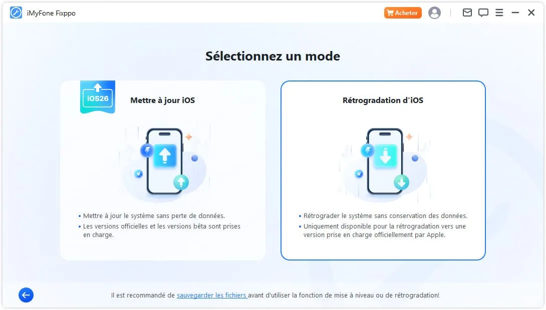 Le logiciel iMyFone Fixppo est une solution simple et fiable pour rétrograder votre appareil à iOS 18 sans perdre de données.